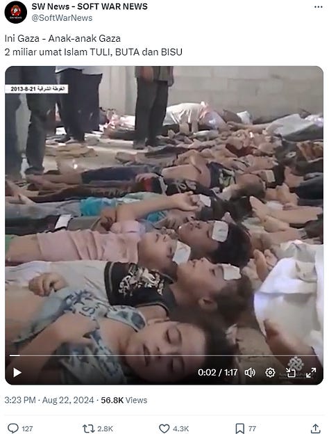 Hunger isn’t Pallywood’s only genre—fire dramas are a favourite. An intelligence brief on Gazawood’s “burned victims” flags staged or exaggerated scenes after Israeli strikes.