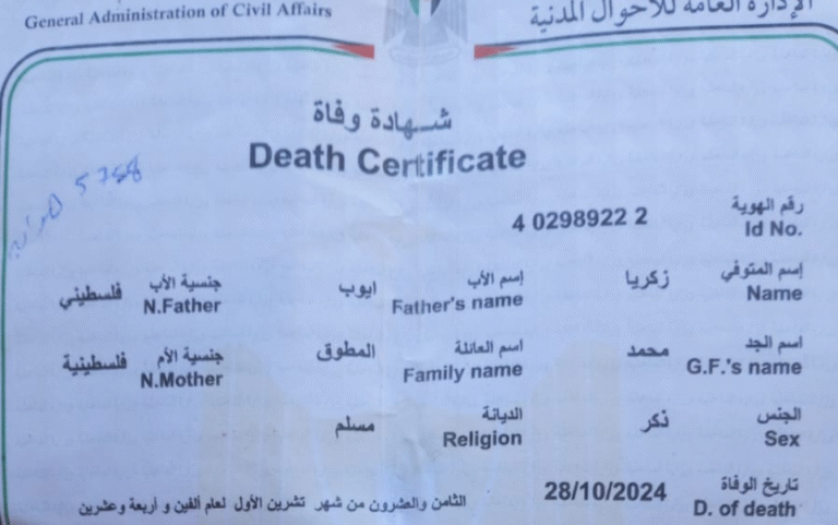 Collier also exposed distortions around Mohammed’s father, Zakaria Ayoub Al-Matouq. Legacy media breathlessly reported that he’d been killed “while collecting food”—a detail carefully crafted to bolster the starvation myth. Collier got hold of the death certificate, which showed that Zakaria died on 28 October 2024 amid intense combat in Jabalia, a battlefield where Hamas had directly engaged IDF forces.