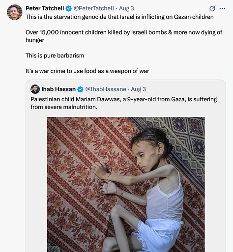For months we’ve been drenched in tear-jerker imagery—gaunt Gazan toddlers, endless aid trucks, wailing mothers—deployed to sell one storyline: Israel is deliberately starving Gaza. Legacy outlets have swallowed it whole. Time to tap the brakes. What you’re seeing isn’t organic journalism; it’s a propaganda machine that launders staged set-pieces and selective framing into “news,” amplified by credulous coverage from the BBC and a chorus of UN-adjacent bodies.