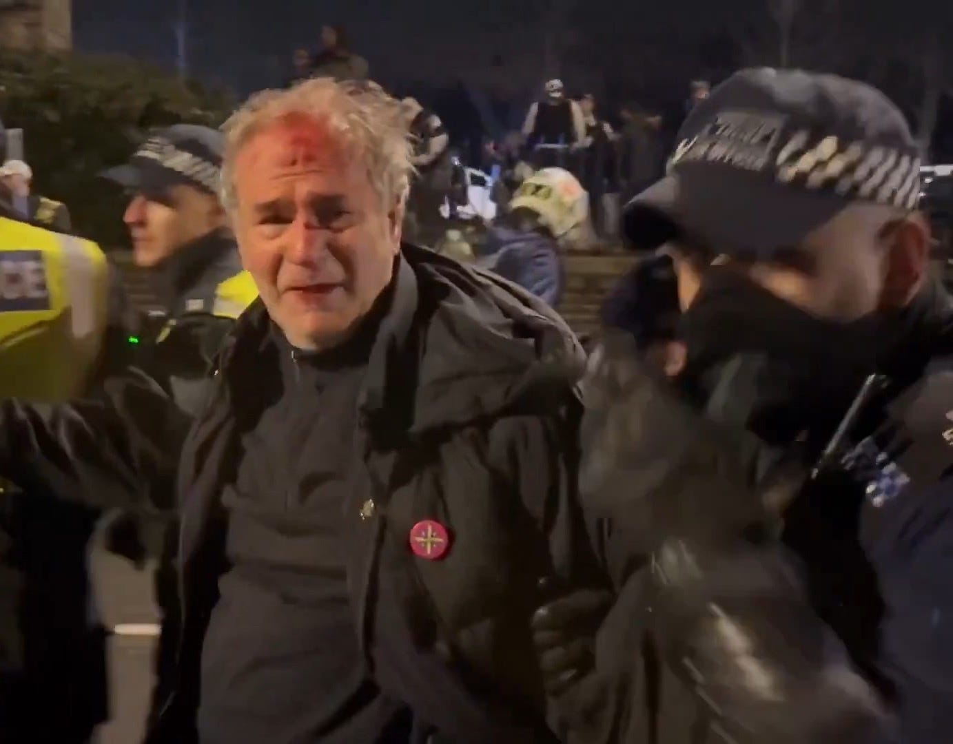 An elderly man goes down. Seventy, according to voices at the scene. Not a “young football hooligan,” as one person points out—because London’s establishment always likes its victims to be unsympathetic. It’s much easier to justify bruises when you can call someone “far-right” and go home feeling virtuous.